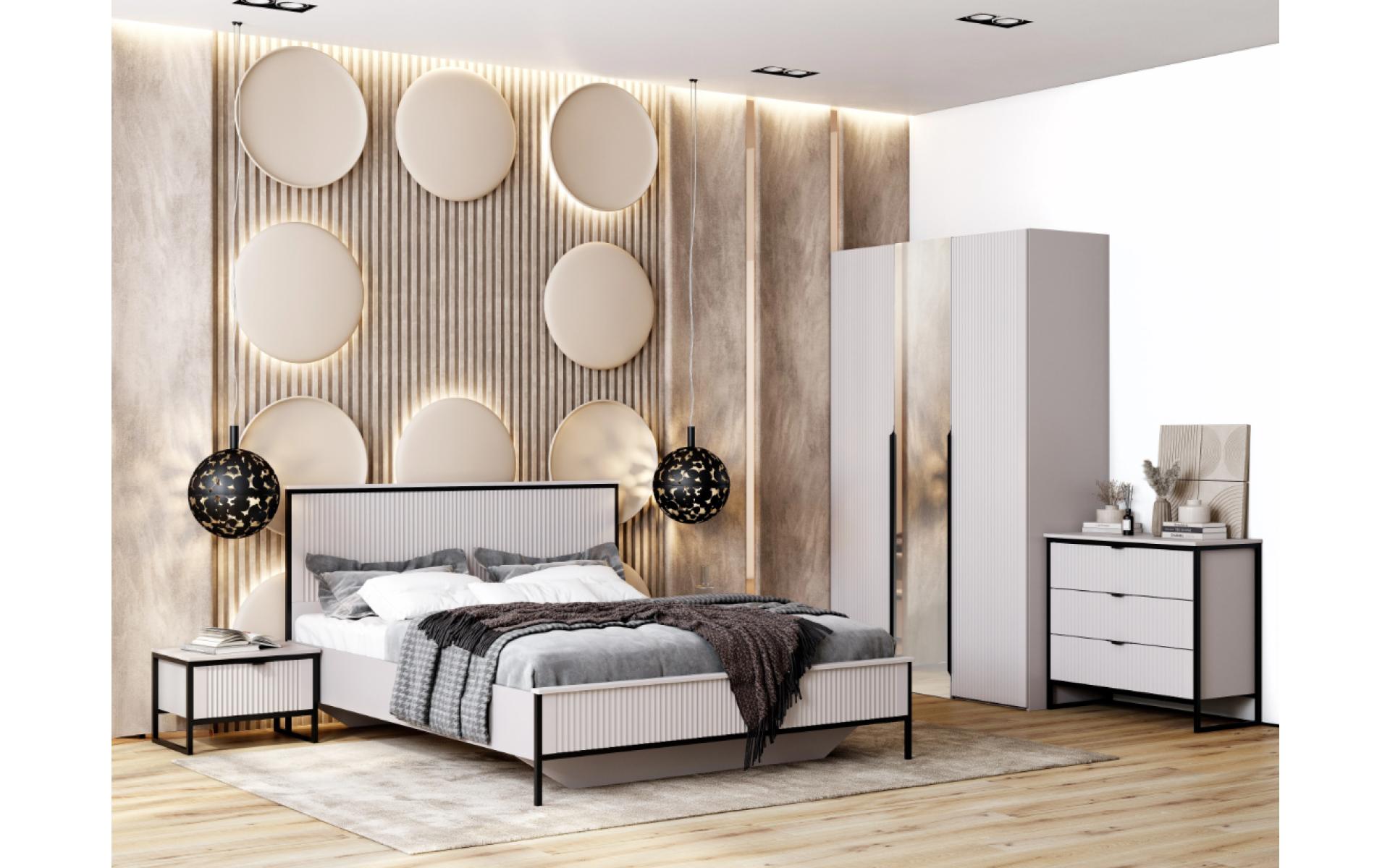 В изголовье кровати вставка из мягкого элемента. Матрасное основание встроено в конструкцию кровати. Основанием служат березовые изогнутые ламели, закрепленные на царгах. Возможность установки ортопедического основания или бельевого ящика не предусмотрена конструкцией кровати.