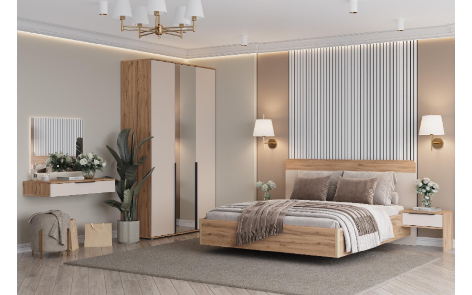 Шкаф с 3-мя распашными дверками. За створками отделения поделены на отсек с штангой и отсек с полками.