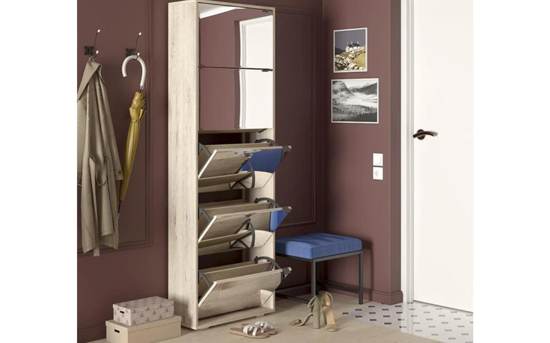 Обувница Ави позволит хранить в полном порядке обувь всей семьи, сэкономит место в прихожей за счет необычного устройства полок.