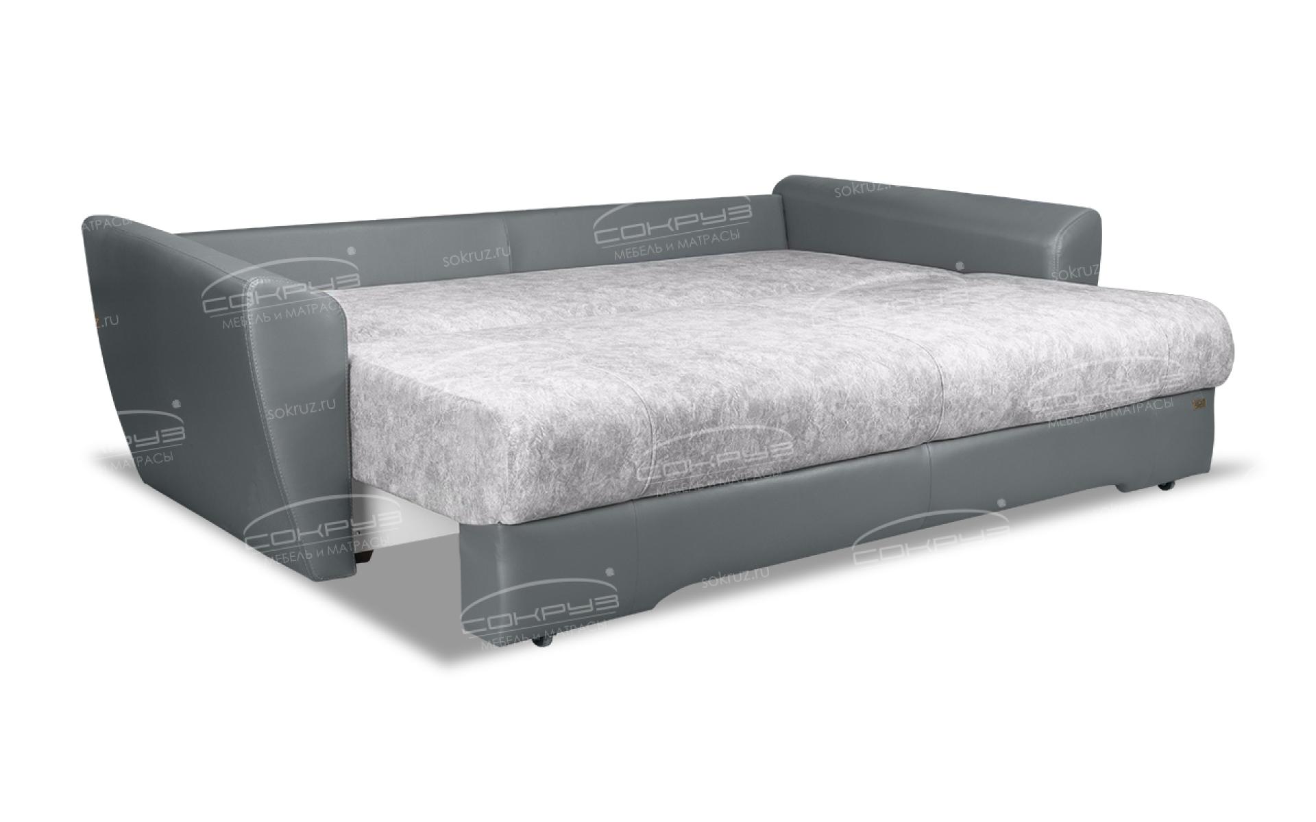 Отличительная черта этого дивана – универсальность. Обладая повышенной комфортностью и элегантным обликом, диван исключительно удобен для сна. Особенности комплектации: выполнен на основе независимого пружинного блока с использованием термовойлока, что позволяет добиться ортопедического эффекта во время сна. На заказ возможно изготовление спального места на основе эластичного ППУ или пружинного блока «Bonnell». Большим плюсом для небольших помещений является наличие просторного бельевого ящика с вентиляцией.