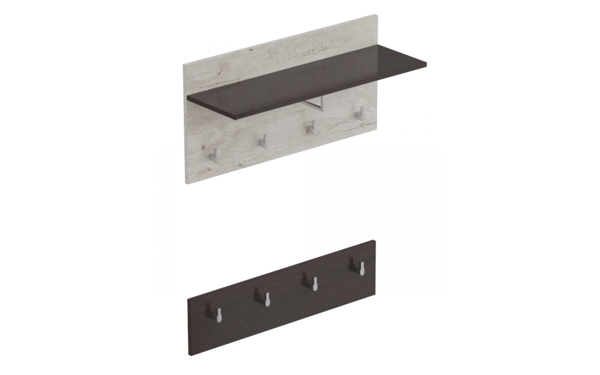 Панель с крючками и полкой под головные уборы и дополнительной панелью с крючками для детских вещей.