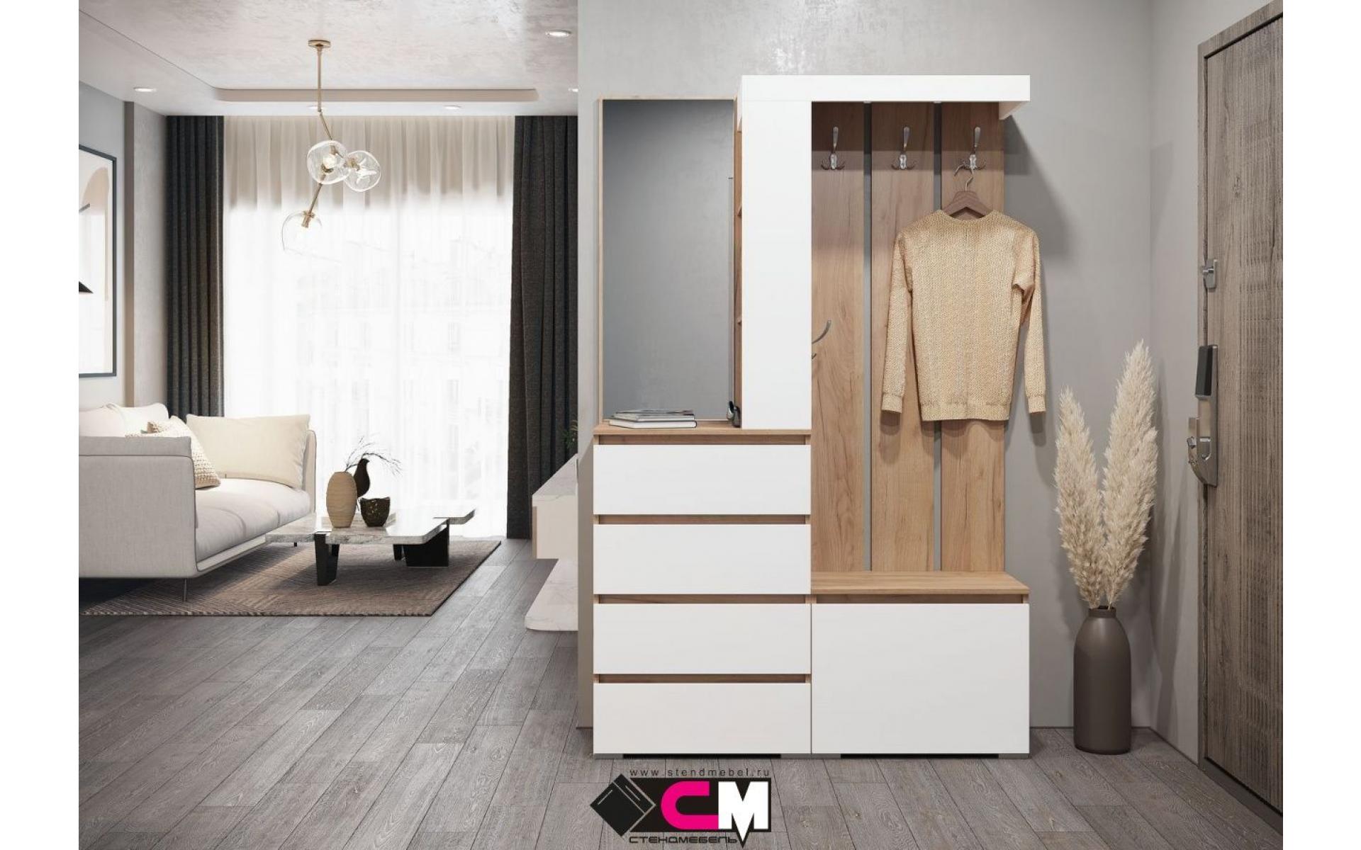 Прихожая с 4-мя выдвижными ящиками, вешалкой с крючками и зеркалом.