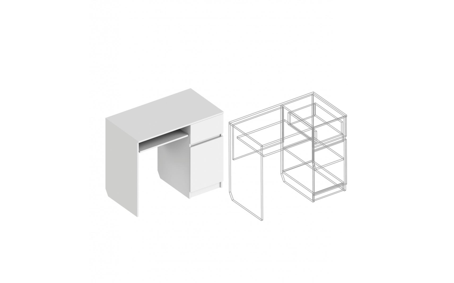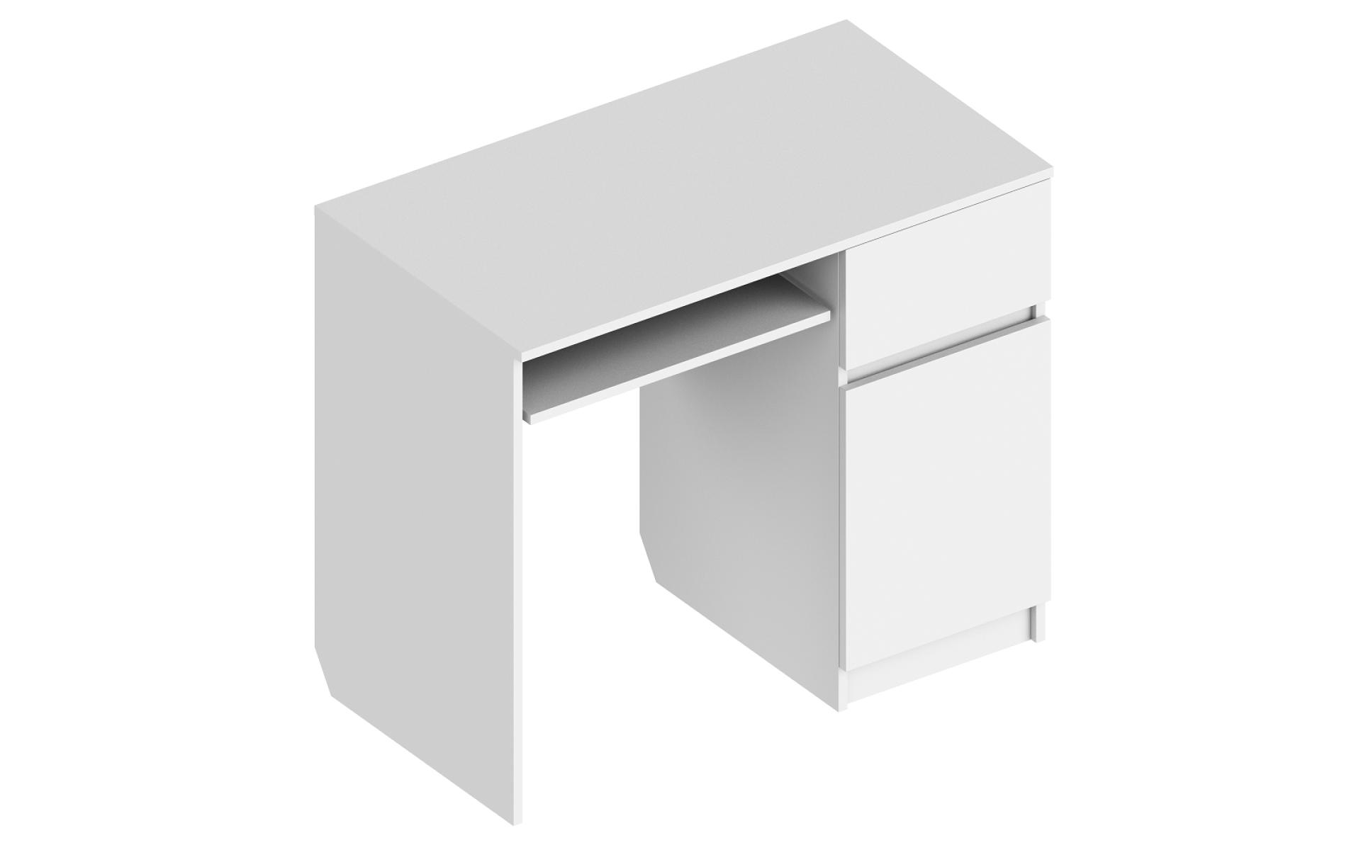 Прямой письменный стол с одним выдвижным ящиком и распашной дверкой.
