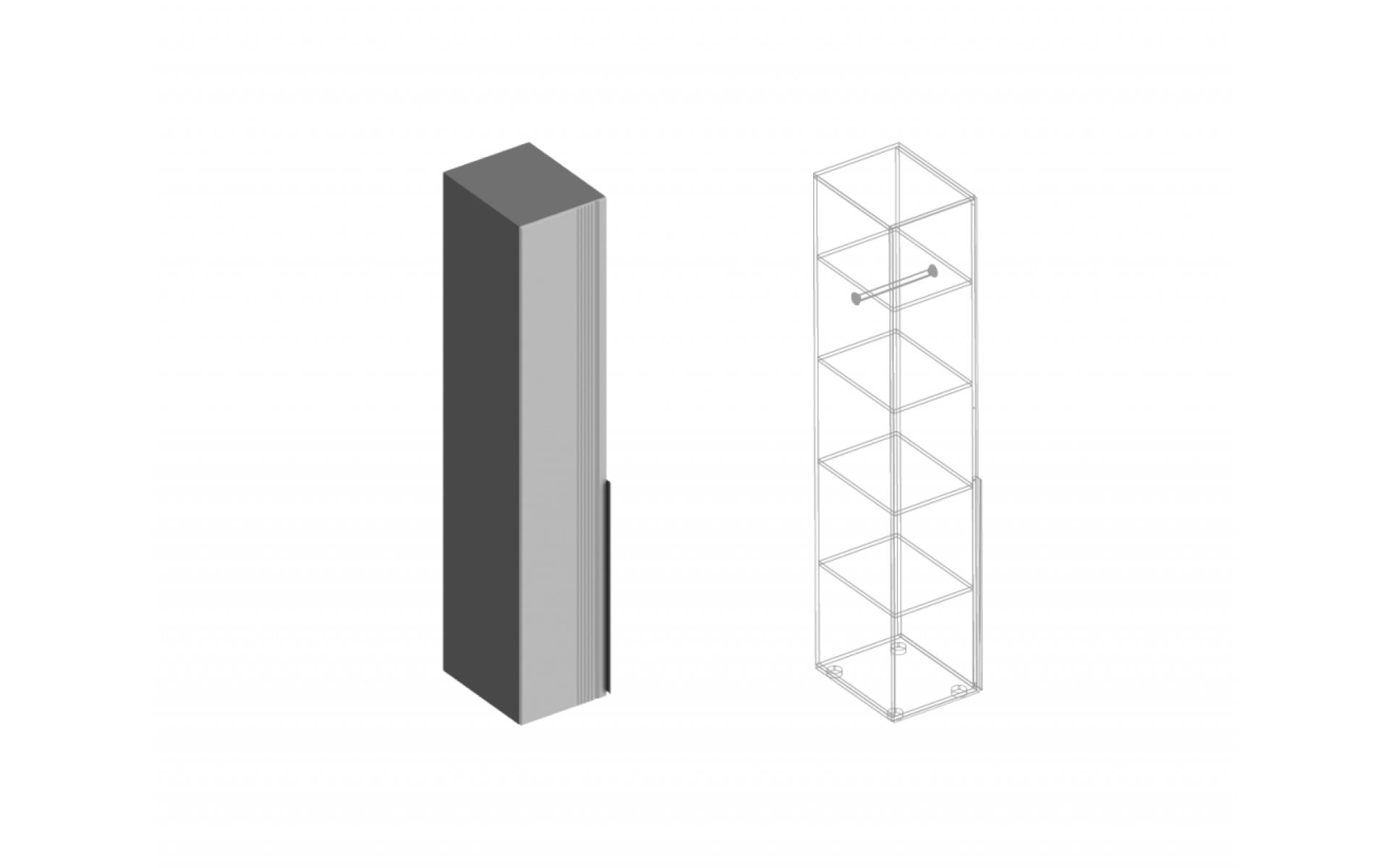 Пенал с одной распашной дверкой и полками за ней. Штанга идет в комплекте.