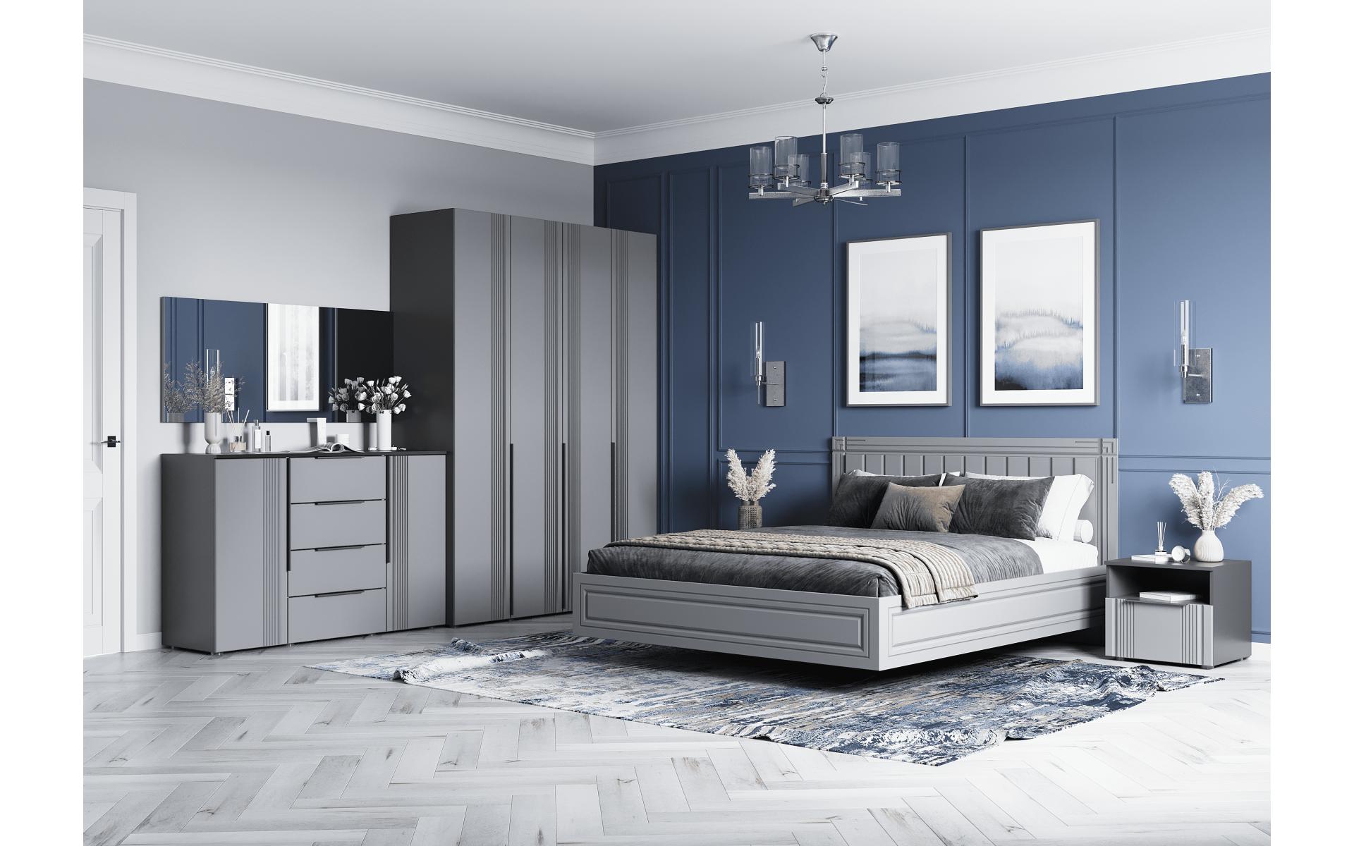 Комод с двумя распашными дверками и четырьмя выдвижными ящиками.