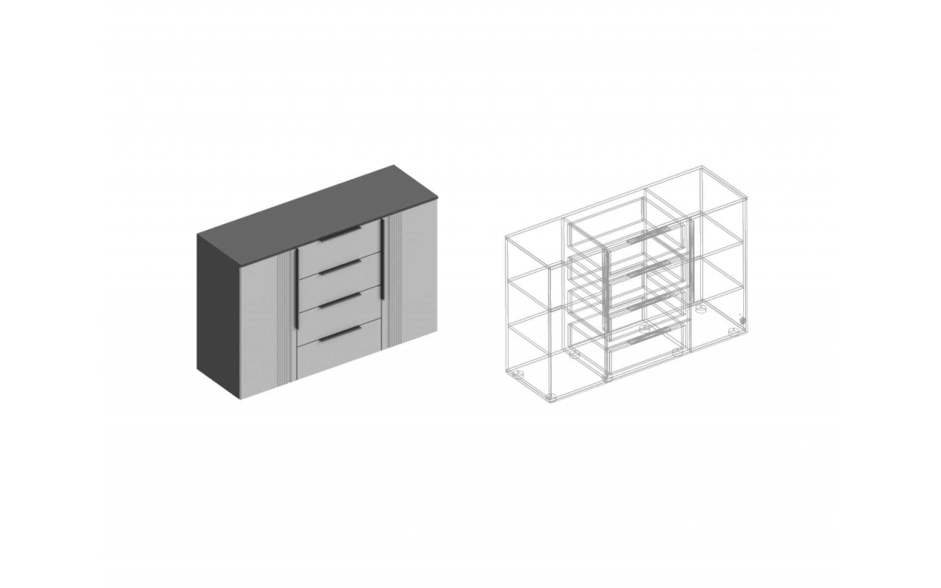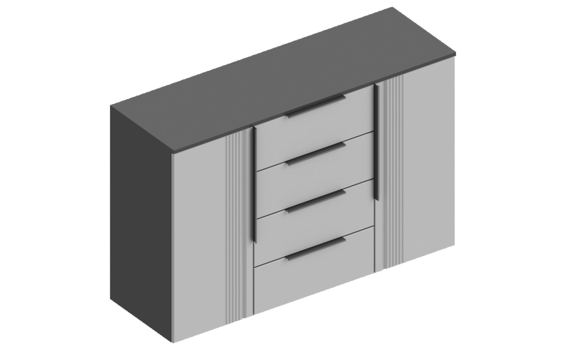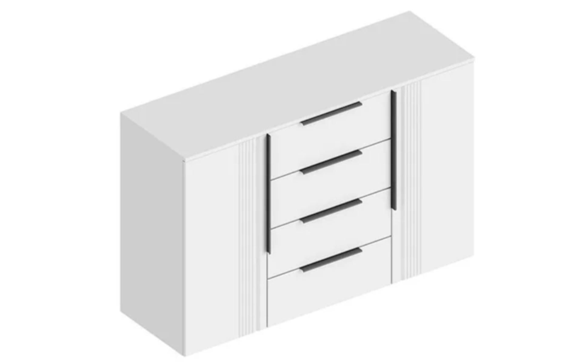 Комод с двумя распашными дверками и четырьмя выдвижными ящиками.
